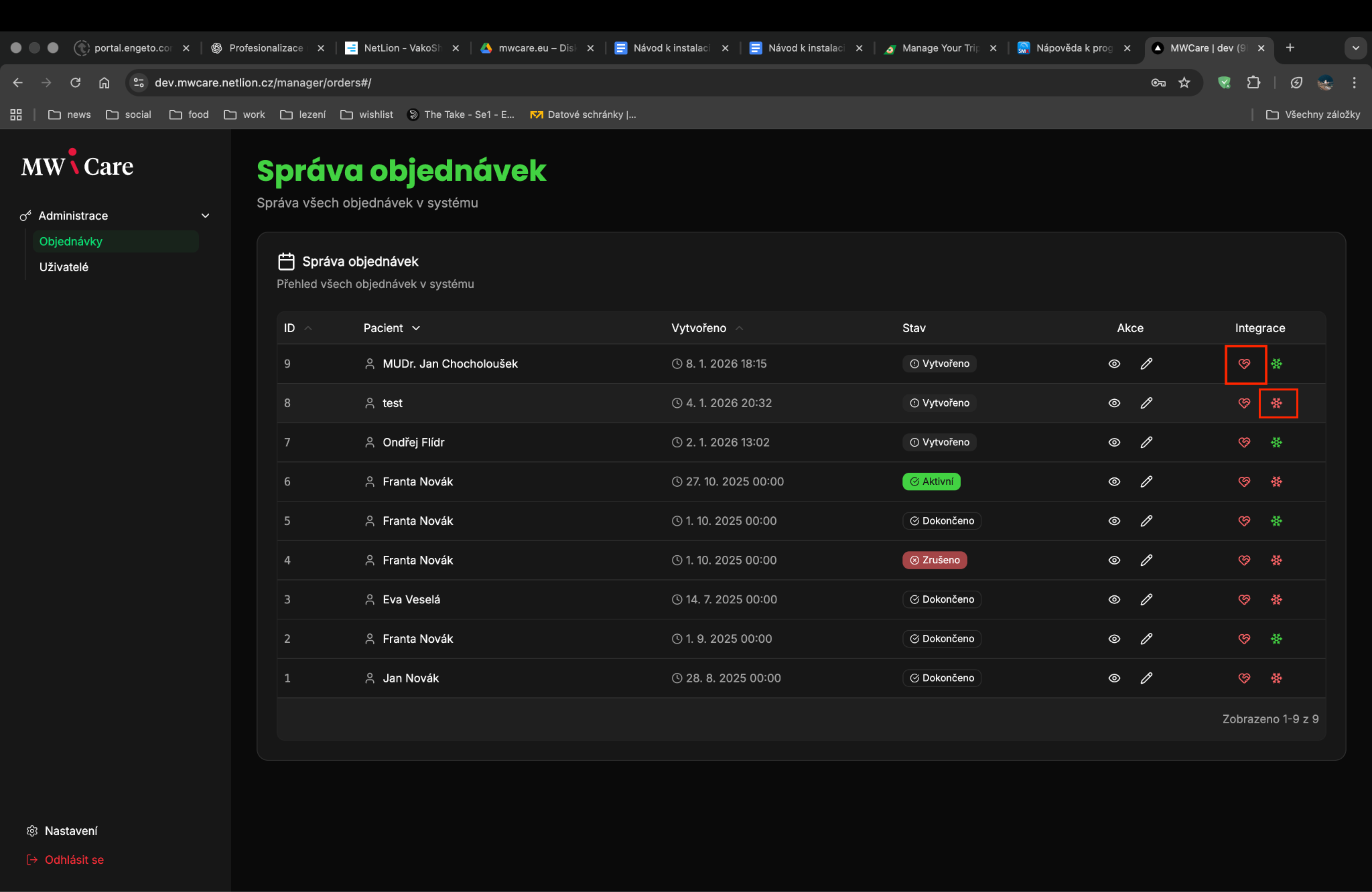 - Ve vašem prohlížeči se vám otevře stránka s kartou pacienta v MWC Platform